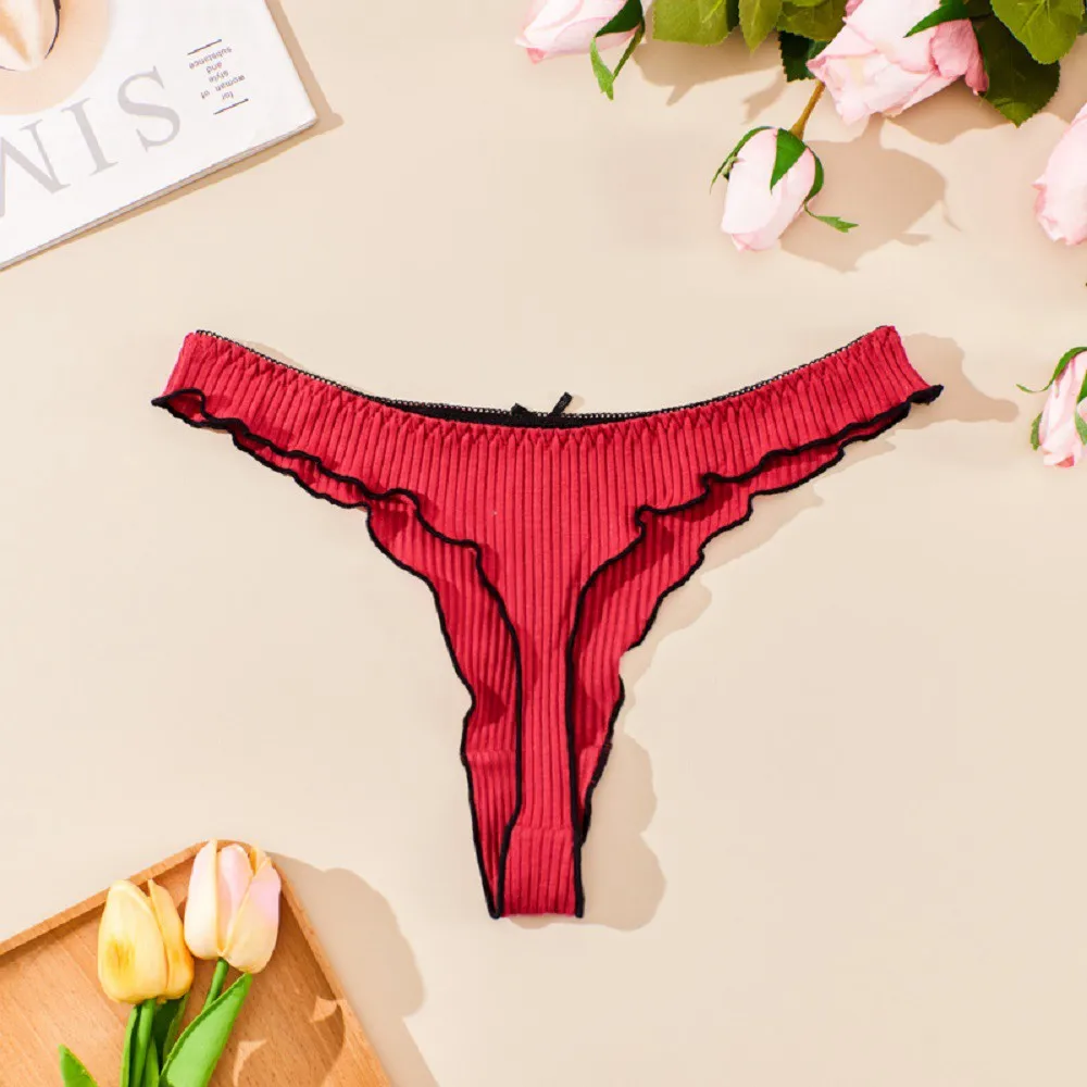 Bow G-string Sexy Panties Cotton Women Underpants Ladies Thong Solid Color Low Waist Bikini Briefs Underwear Lingerie for Ladies
