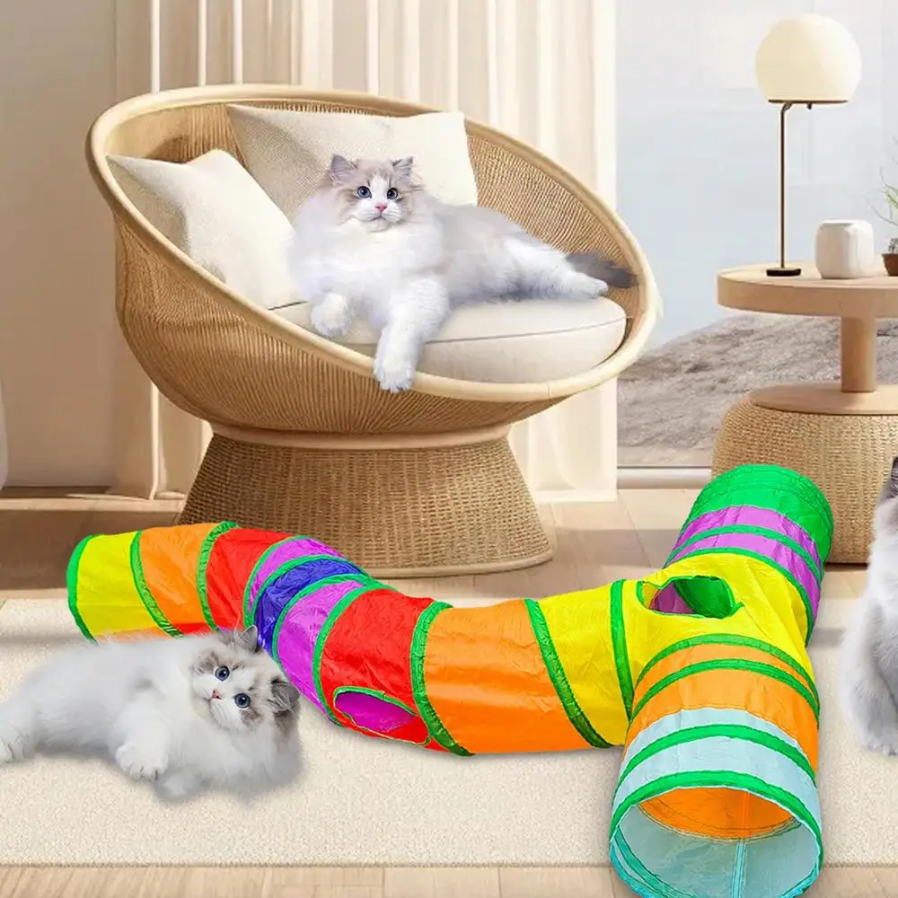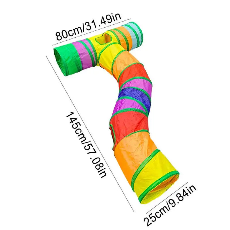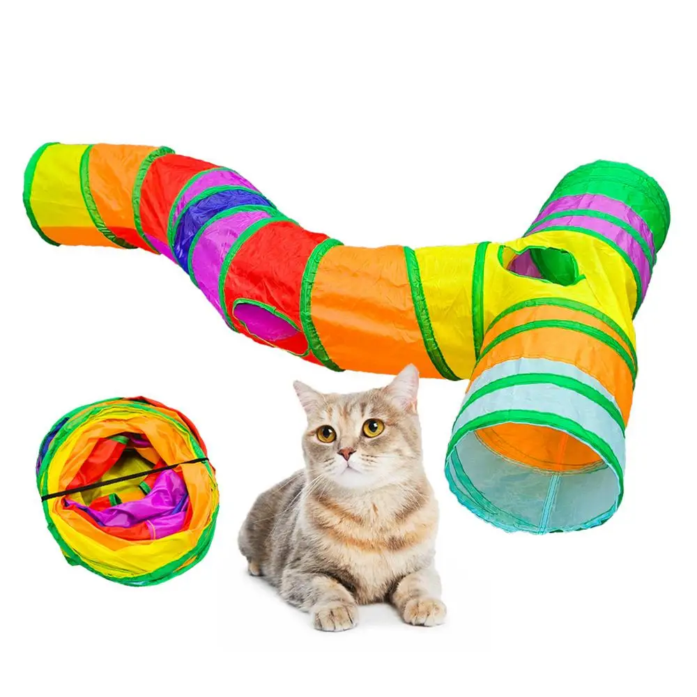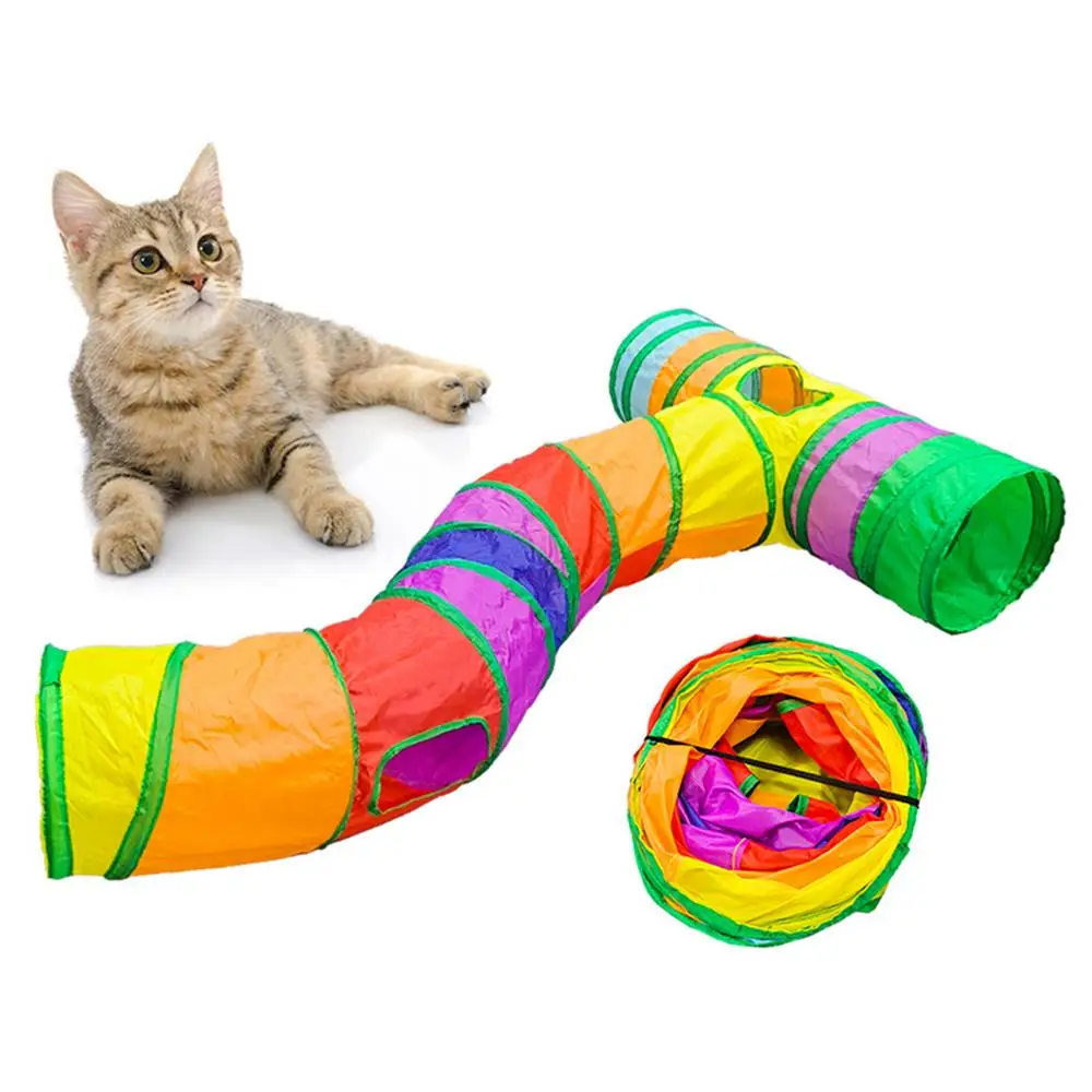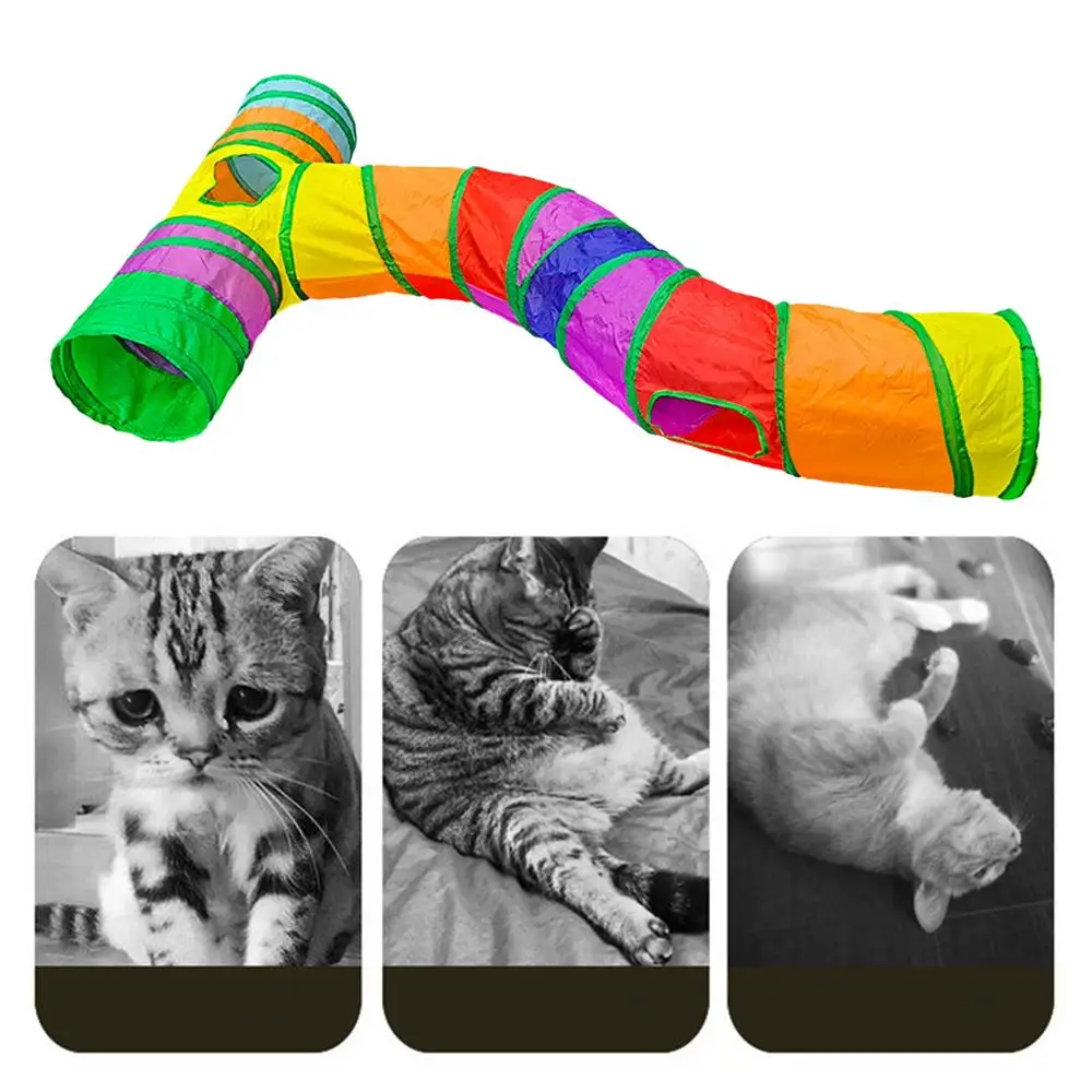 1.Pet Friendly: The Multifunctional Rainbow Cat Toy Tunnel brings out the playful side of your feline friend, providing more entertainment. With its T-shaped combination, it serves as a roller, allowing cats to enter and exit from multiple points: making it the perfect toy for your playful furball.