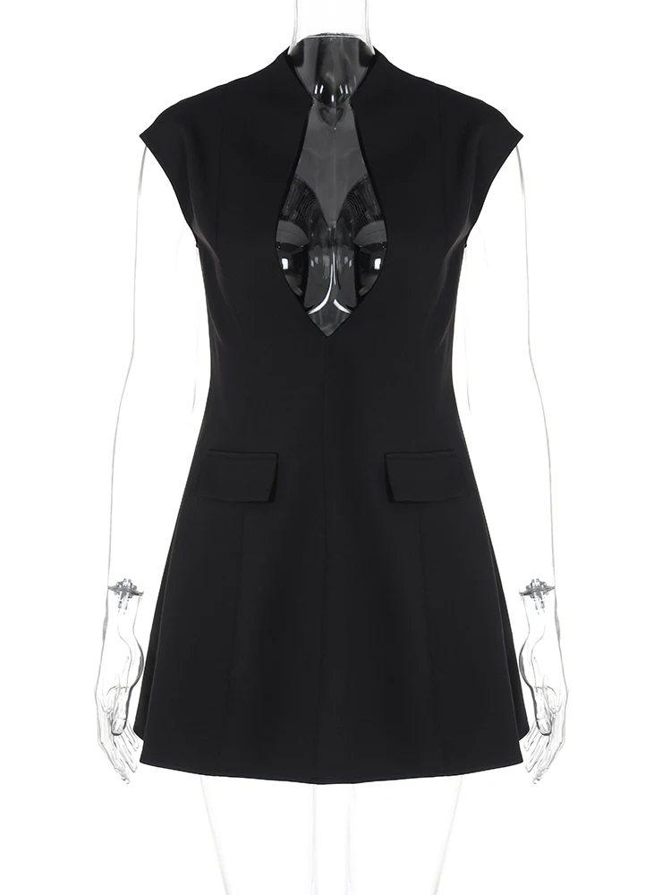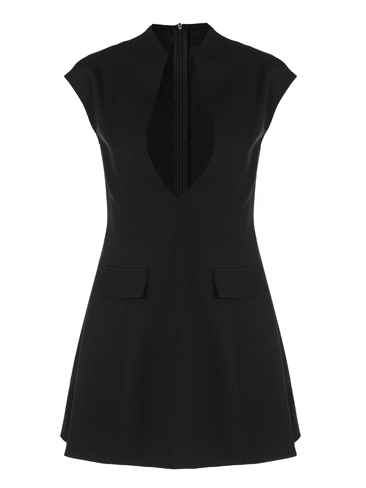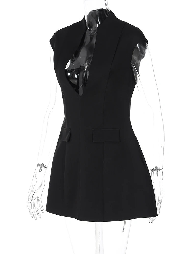 Deep V-Neck Zipper Mini Dress Solid Summer Women'S Outfits 2024 Party Clothes Clubwear Birthday Wholesale Drop Shipping