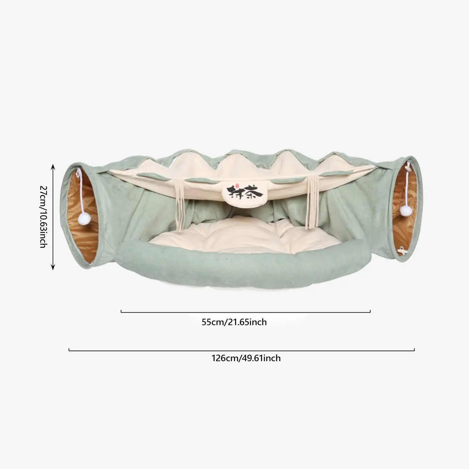 【DESIGN】: 2 in 1 design, Cat Tunnel Bed can be used as a cat bed or hiding place, 49.61'' in length.