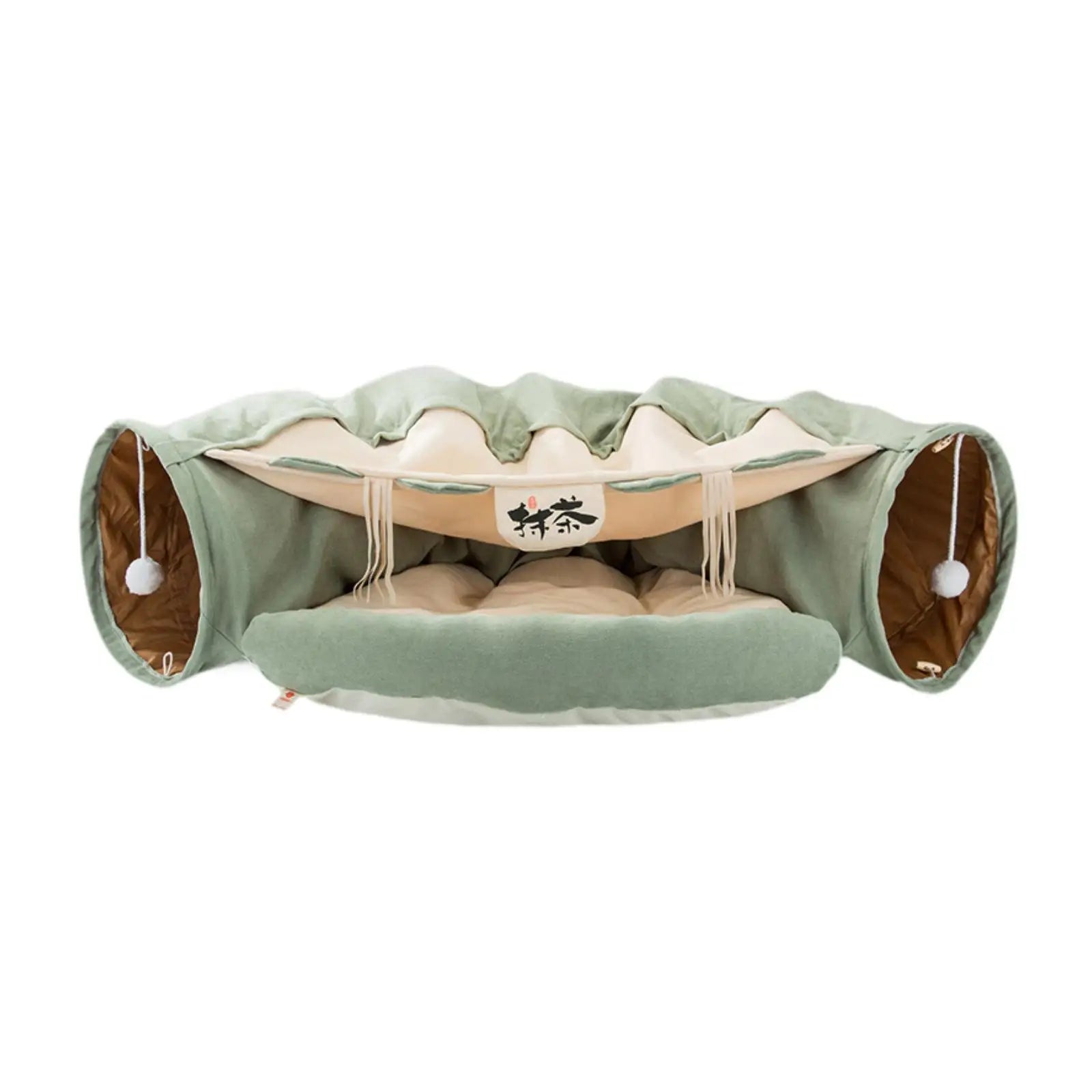 Foldable Cat Tunnel Bed with Removable Mat Kitty Training Interactive Cat Activity Center for Cats Pets Outdoor Ferrets